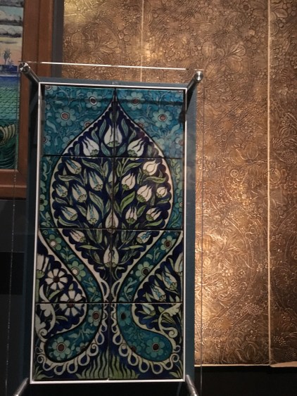 The display below it read, “His designs were inspired by destinations in India and Asia, and by Iznik ceramics of the 16th century Ottoman Empire which he encountered at the South Kensington Museum”. It’s almost ironic to consider William de Morgan never crossed a national border himself whilst making these designs, instead drawing on objects from other museums himself.